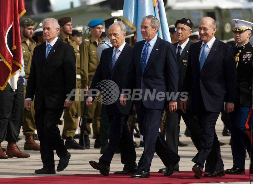 ブッシュ大統領は日本時間午後19時、テルアビブ(Tel Aviv)のベン・グリオン(Ben Gurion)空港に大統領専用機で到着。イスラエルは最も近しい同盟国の首脳を、高官数十人と盛大な歓迎式典で出迎えた。