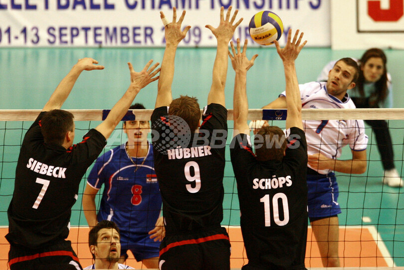 スポーツ スポーツ その他 ドイツ男子 フルセットでセルビアを破り2連勝 2008年1月10日 11:40 発信地:イズミル/トルコ [ 中東・北アフリカ トルコ ] このニュースをシェア ‹ › ❮ 2/6 ❯ ドイツの(左から)%%Mark Siebeck%%、%%Stefan Hubner%%、ヨヘン・シェープス(%%Jochen Schops%%)にブロックされながらもスパイクを放つセルビアのニコラ・コバチェビッチ(%%Nikola Kovacevic%%、右)。(c)AFP/ALI OZLUER 画像作成中 ! 【1月10日 AFP】バレーボール北京五輪欧州予選(European Olympic Qualification Tournament 2008)・男子・グループB、セルビアvsドイツ。試合はドイツがフルセットの末3-2(25-22、24-26、22-25、25-19、15-11)で勝利し、2連勝を飾った。(c)AFP スポーツ その他 一覧へ> メディア・報道関係・法人の方向け 写真・動画 購入のお問合せ>