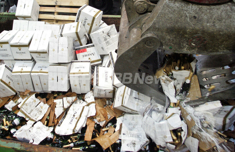 【1月11日 AFP】ベルギーのアントワープ(Antwerp)で10日、米国産スパークリングワイン3000本が、ベルギーの関税当局により処分された。本来「シャンパン」の呼称は、フランスのシャンパーニュ(Champagne region)地方で製造されたスパークリングワインにのみ許されている。このため「シャンパン」とされている米国産スパークリングワイン「Andre」は処分された。(c)AFP/BELGA