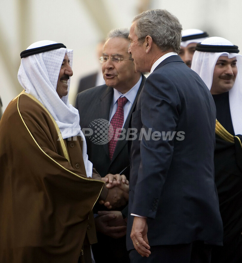 【1月12日 AFP】中東歴訪中のジョージ・W・ブッシュ(George W. Bush)米大統領は11日、3日間のイスラエル・パレスチナ訪問を終え、次の目的地のクウェートに到着した。同大統領は、同地を皮切りにバーレーン、アラブ首長国連邦(UAE)、サウジアラビアの湾岸諸国を訪問し、イランをめぐる問題に対して、親米アラブ諸国からの支持を取り付ける構えだ。(c)AFP
