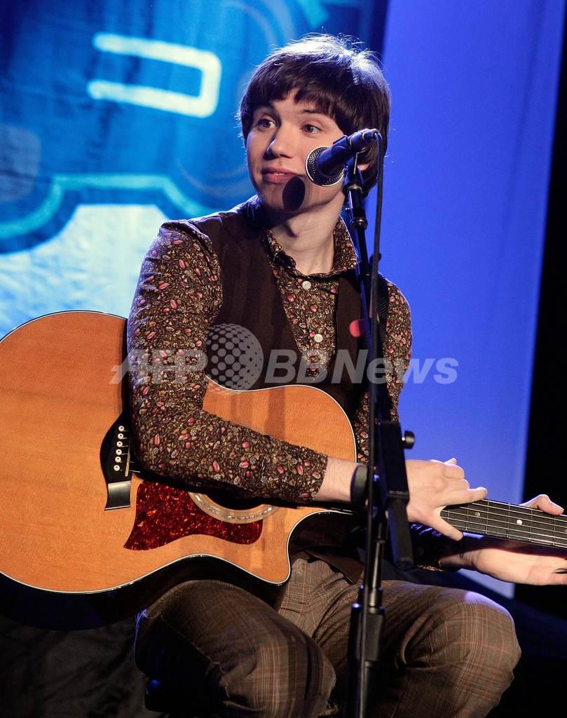 2008年1月10日、2008年のホンダ・シヴィック・ツアー(Honda Civic Tour)でヘッドライナーを務めることになったバンド、パニック・アット・ザ・ディスコ(Panic! At The Disco)のギタリストのライアン・ロス(%%Ryan Ross%%)。(c)AFP/Getty Images/Kevin Winter