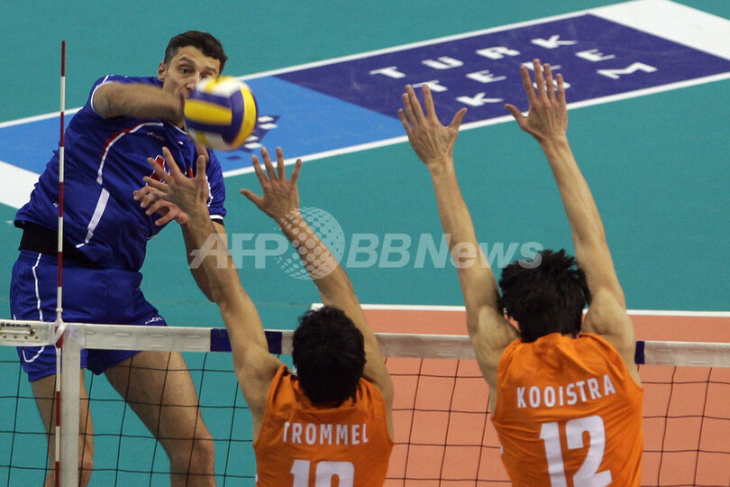 スポーツ スポーツ その他 セルビア男子 オランダを降し決勝進出 2008年1月13日 6:23 発信地:イズミル/トルコ [ 中東・北アフリカ トルコ ] このニュースをシェア ‹ › ❮ 7/7 ❯ スパイクを打ち込むセルビア%%Ivan Miljkovis%%(左)。(c)AFP/MUSTAFA OZER 画像作成中 ! 【1月13日 AFP】バレーボール北京五輪欧州予選(European Olympic Qualification Tournament 2008)・男子・準決勝、セルビアvsオランダ。試合はセルビアがセットカウント3-0(25-23、27-25、25-21)でオランダを降し、決勝進出を決めた。(c)AFP スポーツ その他 一覧へ> メディア・報道関係・法人の方向け 写真・動画 購入のお問合せ>
