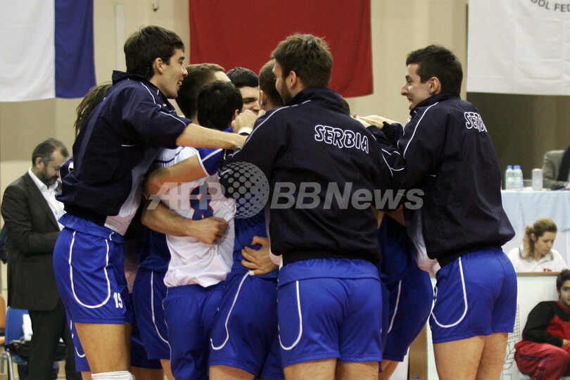 スポーツ スポーツ その他 セルビア男子 オランダを降し決勝進出 2008年1月13日 6:23 発信地:イズミル/トルコ [ 中東・北アフリカ トルコ ] このニュースをシェア ‹ › ❮ 3/7 ❯ 勝利の喜びを分かち合うセルビアの選手。(c)AFP/MUSTAFA OZER 画像作成中 ! 【1月13日 AFP】バレーボール北京五輪欧州予選(European Olympic Qualification Tournament 2008)・男子・準決勝、セルビアvsオランダ。試合はセルビアがセットカウント3-0(25-23、27-25、25-21)でオランダを降し、決勝進出を決めた。(c)AFP スポーツ その他 一覧へ> メディア・報道関係・法人の方向け 写真・動画 購入のお問合せ>