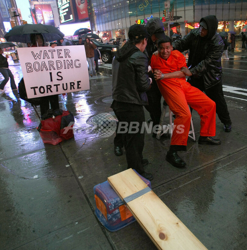 水責めは、口や体を縛られた容疑者に水を浴びせかけ、今にも溺れそうな状況を作り上げるものだとされている。(c)AFP