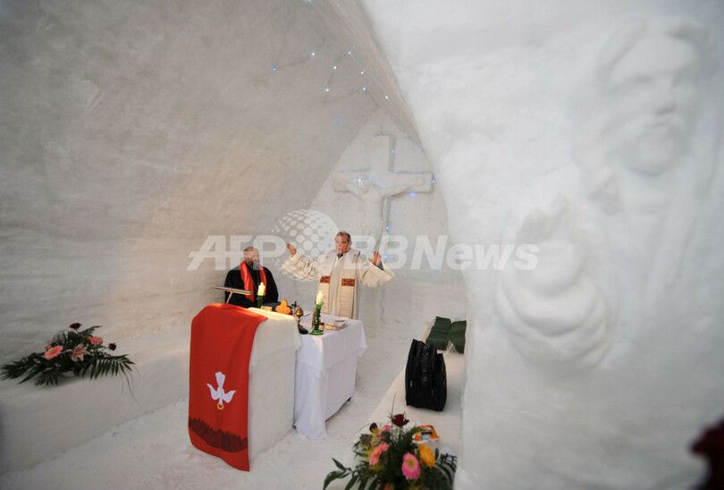 ニュース ライフ ルーマニアの雪山に「氷の教会」が出現 2008年1月14日 7:29 発信地:Balea Lac/ルーマニア [ ヨーロッパ ルーマニア ] このニュースをシェア ‹ › ❮ 3/4 ❯ 2008年1月13日、ルーマニアのリゾート地Balea Lacに建てられた「氷の教会」で、完成を祝う礼拝を執り行う司祭。(c)AFP/DANIEL MIHAILESCU 画像作成中 ! 【1月14日 AFP】ルーマニアの首都ブカレスト(Bucharest)の北西300キロに位置する、標高2034メートルのリゾート地バレアラック(Balea Lac)に、氷のみで作られた教会が出現した。(c)AFP ライフ 一覧へ> メディア・報道関係・法人の方向け 写真・動画 購入のお問合せ>