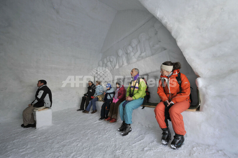 ニュース ライフ ルーマニアの雪山に「氷の教会」が出現 2008年1月14日 7:29 発信地:Balea Lac/ルーマニア [ ヨーロッパ ルーマニア ] このニュースをシェア ‹ › ❮ 2/4 ❯ 2008年1月13日、ルーマニアのリゾート地Balea Lacに建てられた「氷の教会」で、完成を祝う礼拝に出席する人々。後方に見えるのは「最後の晩餐(Last Supper)」を表した氷の彫刻。(c)AFP/DANIEL MIHAILESCU 画像作成中 ! 【1月14日 AFP】ルーマニアの首都ブカレスト(Bucharest)の北西300キロに位置する、標高2034メートルのリゾート地バレアラック(Balea Lac)に、氷のみで作られた教会が出現した。(c)AFP ライフ 一覧へ> メディア・報道関係・法人の方向け 写真・動画 購入のお問合せ>