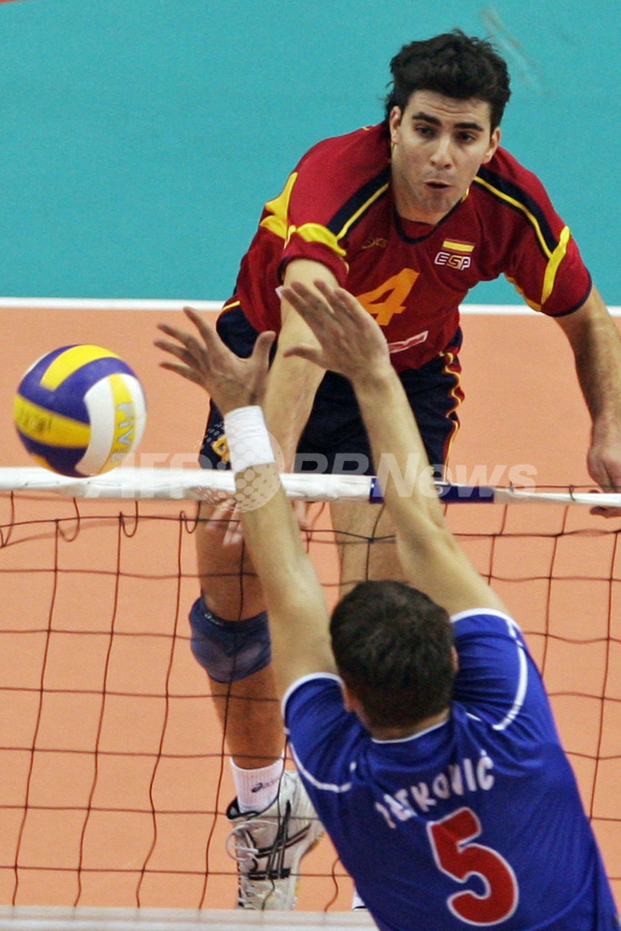 五輪 セルビア男子 決勝でスペインを破り北京五輪出場へ 2008年1月14日 3:28 発信地:イズミル/トルコ [ 中東・北アフリカ トルコ ] このニュースをシェア ‹ › ❮ 6/12 ❯ セルビアのウラド・ペトコビッチ(%%Vlado Petkovic%%、下)のブロック越しにスパイクを放つスペインのマヌエル・セビリャノ(%%Manuel Sevillano%%)。(c)AFP/MUSTAFA OZER 画像作成中 ! 【1月14日 AFP】バレーボール北京五輪欧州予選(European Olympic Qualification Tournament 2008)・男子・決勝、セルビアvsスペイン。試合はセルビアがフルセットの末3-2(24-26、16-25、25-19、25-15、17-15)でスペインを降し、北京五輪出場権を獲得した。(c)AFP 五輪 一覧へ> メディア・報道関係・法人の方向け 写真・動画 購入のお問合せ>