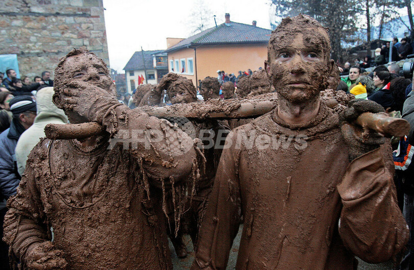 ニュース ライフ こぼれ話 ピエロや人食いがマケドニアでカーニバルパレード 2008年1月14日 11:47 発信地:Vevchani/北マケドニア [ ヨーロッパ 北マケドニア ] このニュースをシェア ‹ › ❮ 3/4 ❯ 2008年1月13日、マケドニアの首都スコピエ(Skopje)の南西180キロにあるVevchaniで、全身泥まみれでカーニバルパレードを行う参加者。(c)AFP/ROBERT ATANASOVSKI 画像作成中 ! 【1月14日 AFP】マケドニアの首都スコピエ(Skopje)の南西180キロにあるVevchaniで13日、Vevchaniカーニバルが行われた。同カーニバルは1400年の歴史を誇るもので、毎年マケドニア正教会の慣習としてユリウス歴の新年の始まりを祝う聖バシリウス(Saint Basil)の祝祭前日に行われる。(c)AFP ライフ 一覧へ> メディア・報道関係・法人の方向け 写真・動画 購入のお問合せ>