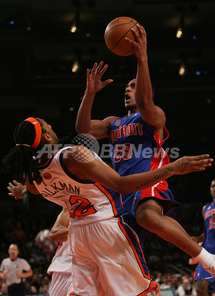 スポーツ バスケットボール ニックス ピストンズに大勝しシーズン10勝目 2008年1月14日 15:34 発信地:ニューヨーク/米国 [ 北米 米国 ] このニュースをシェア ‹ › ❮ 2/14 ❯ ニックスのレナルド・ボークマン(%%Renaldo Balkman%%)と接触しながらも得点を狙うピストンズのアーロン・アファラロ(%%Arron Afflalo%%)。(c)AFP/Getty Images/Nick Laham 画像作成中 ! 【1月14日 AFP】07-08NBA、ニューヨーク・ニックス(New York Knicks)vsデトロイト・ピストンズ(Detroit Pistons)。試合は最大31点のリードを奪ったニックスが89-65でピストンズを破り、シーズン10勝目を挙げた。(c)AFP/Getty Images バスケットボール 一覧へ> メディア・報道関係・法人の方向け 写真・動画 購入のお問合せ>