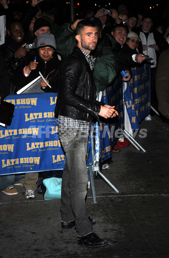 ニュース ライフ マルーン5のアダム・レヴィン 「レイト・ショウ・ウィズ・デビッド・レターマン」に出演 2008年1月15日 14:13 発信地:ニューヨーク/米国 [ 北米 米国 ] このニュースをシェア ‹ › ❮ 3/3 ❯ 2008年1月14日、CBSのトーク番組「レイト・ショウ・ウィズ・デビッド・レターマン(The Late Show With David Letterman)」の収録に参加したマルーン5(Maroon 5)のボーカル、アダム・レヴィン(Adam Levine)。(c)AFP/Getty Images/Brad Barket 画像作成中 ! 【1月15日 AFP】マルーン5(Maroon 5)のボーカル、アダム・レヴィン(Adam Levine)が14日、エド・サリバン劇場(Ed Sullivan Theater)で行われたテレビ局CBSのトーク番組「レイト・ショウ・ウィズ・デビッド・レターマン(The Late Show With David Letterman)」の収録に参加した。(c)AFP/Getty Images ライフ 一覧へ> メディア・報道関係・法人の方向け 写真・動画 購入のお問合せ>