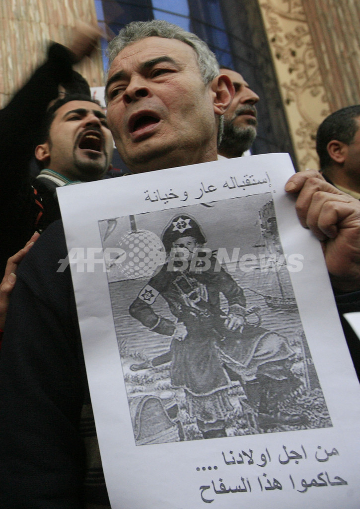 事実上の最大野党である穏健派イスラム原理主義組織「ムスリム同胞団(Muslim Brotherhood)」も13日、ブッシュ大統領を歓迎されざる殺人者だと非難している。(c)AFP