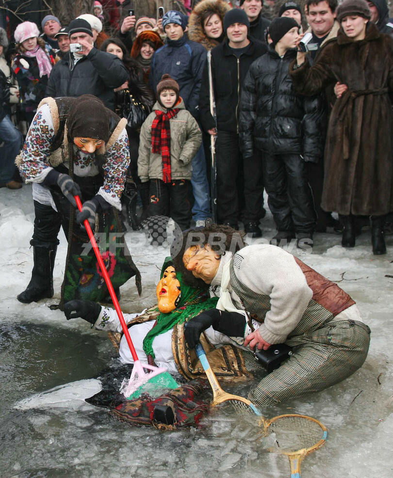 ニュース ライフ 極寒ウクライナの伝統行事「マランカ」で、氷水に飛び込み 2008年1月16日 16:30 発信地:キエフ/ウクライナ [ ロシア・CIS ウクライナ ] このニュースをシェア ‹ › ❮ 7/7 ❯ 2008年1月14日、ウクライナの首都キエフ(Kiev)の南西約550キロの村Vashkivtsiで、旧正月を祝うマランカ(Malanka)の行事で冷水に飛び込む仮装した住民ら。(c)AFP/EVGEN KRAWS 画像作成中 ! 【1月16日 AFP】ウクライナで14日、旧正月を祝うマランカ(Malanka)の行事が行われ、さまざまな仮装の住民らが街でパレードを行うなどした。同地方元では伝統的にユリウス歴で大みそかにあたる1月3日からマランカを祝う。首都キエフ(Kiev)の南西約550キロの村Vashkivtsiでは厳しい寒さの中、氷の張った冷水に飛び込む人の姿もみられた。(c)AFP ライフ 一覧へ> メディア・報道関係・法人の方向け 写真・動画 購入のお問合せ>