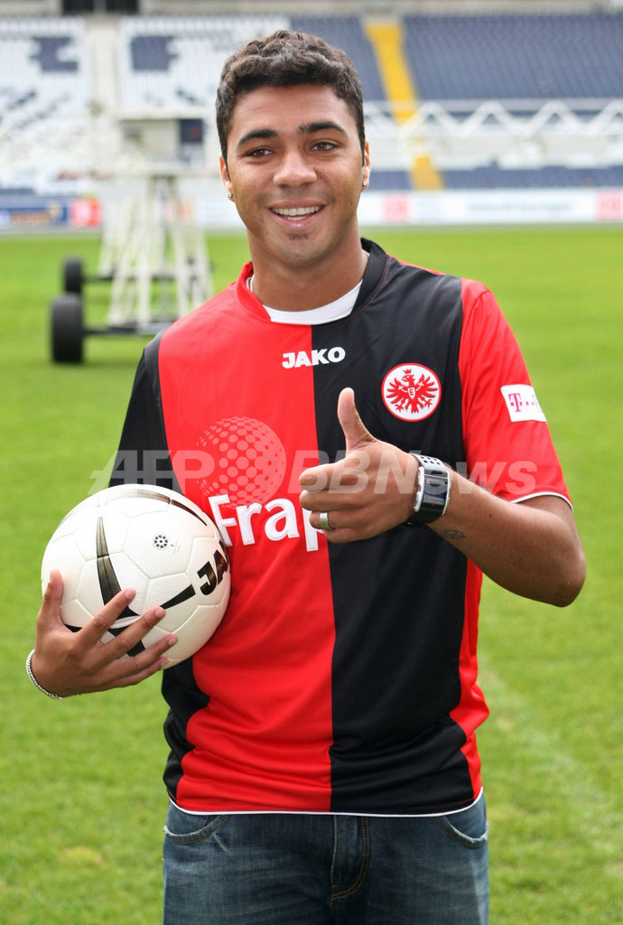 【1月17日 AFP】ドイツ・ブンデスリーガ1部のフランクフルト(Eintracht Frankfurt)は現地16日、カンピオナート・ブラジレイロ(ブラジル全国選手権)のパルメイラス(Palmeiras)から獲得し2012年まで契約を交わしたブラジル人MFカイオ(Caio Cesar Alves dos Santos)の入団発表を本拠地コメルツバンク・アレナ(Commerzbank Arena)で行った。(c)AFP