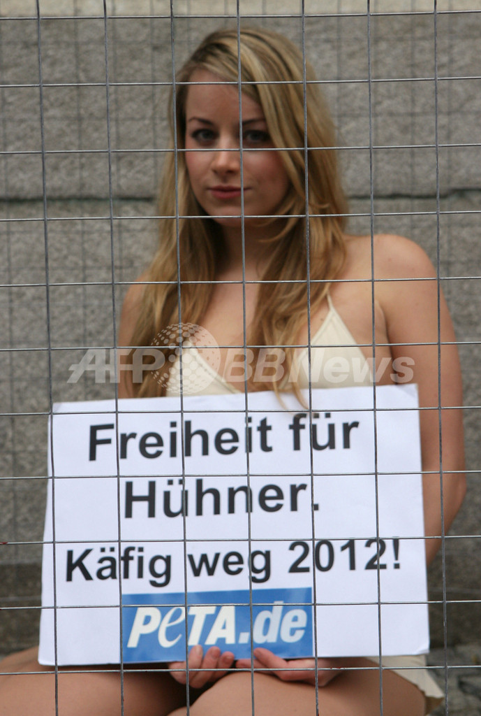 ニュース 環境・科学 こぼれ話 ニワトリ用のかごでPETAが抗議 2008年1月18日 3:19 発信地:ベルリン/ドイツ [ ヨーロッパ ドイツ ] このニュースをシェア ‹ › ❮ 3/8 ❯ 2008年1月16日、ドイツ・ベルリン(Berlin)で抗議活動を行う、動物愛護団体「動物の倫理的扱いを求める人々の会(PETA)」の活動家。(c)AFP/JOHN MACDOUGALL 画像作成中 ! 【1月18日 AFP】ドイツのベルリン(Berlin)で16日、動物愛護団体「動物の倫理的扱いを求める人々の会(People for the Ethical Treatment of Animals、PETA)」がドイツ連邦食糧・農業・消費者保護省の建物の前で抗議を行った。「ニワトリに自由を。2012年にはかごを無くそう」と書いたプラカードを持った活動家らは、卵を産むニワトリに使われるかごの使用に対して抗議している。(c)AFP 環境・科学 一覧へ> メディア・報道関係・法人の方向け 写真・動画 購入のお問合せ>