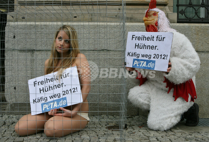 ニュース 環境・科学 こぼれ話 ニワトリ用のかごでPETAが抗議 2008年1月18日 3:19 発信地:ベルリン/ドイツ [ ヨーロッパ ドイツ ] このニュースをシェア ‹ › ❮ 5/8 ❯ 2008年1月16日、ドイツ・ベルリン(Berlin)で抗議活動を行う、動物愛護団体「動物の倫理的扱いを求める人々の会(PETA)」の活動家。(c)AFP/JOHN MACDOUGALL 画像作成中 ! 【1月18日 AFP】ドイツのベルリン(Berlin)で16日、動物愛護団体「動物の倫理的扱いを求める人々の会(People for the Ethical Treatment of Animals、PETA)」がドイツ連邦食糧・農業・消費者保護省の建物の前で抗議を行った。「ニワトリに自由を。2012年にはかごを無くそう」と書いたプラカードを持った活動家らは、卵を産むニワトリに使われるかごの使用に対して抗議している。(c)AFP 環境・科学 一覧へ> メディア・報道関係・法人の方向け 写真・動画 購入のお問合せ>