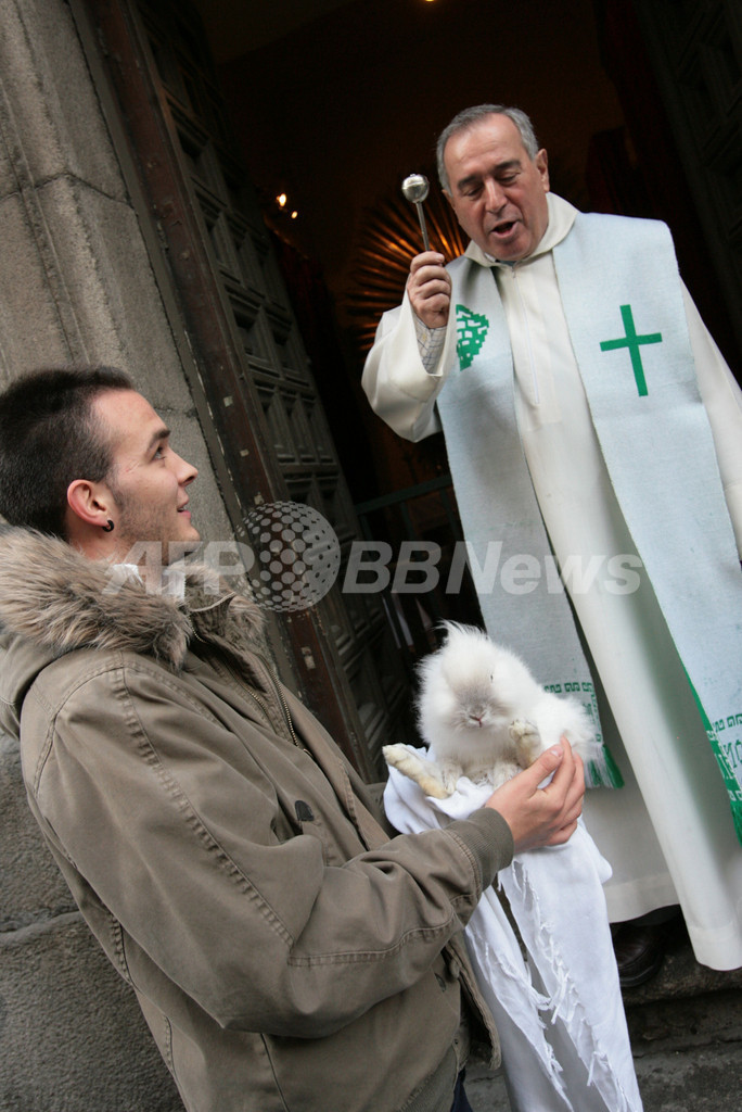 ニュース ライフ スペインの「サン・アントン祭」、ペット連れて教会へ 2008年1月22日 15:46 発信地:マドリード/スペイン [ ヨーロッパ スペイン ] このニュースをシェア ‹ › ❮ 6/7 ❯ 2008年1月17日、スペインの首都マドリード(Madrid)のサン・ミゲル教会(San Miguel)で、飼っているウサギを祝福してもらう男性。(c)AFP/PIERRE-PHILIPPE MARCOU 画像作成中 ! 【1月22日】家畜の守護聖人として知られる聖アントニオ(San Anton)の祭り、サン・アントン祭(festival of San Anton)が17日、スペイン各地で開かれ、各地の教会にペットを連れた大勢の飼い主が祝福を授けてもらおうと訪れた。(c)AFP ライフ 一覧へ> メディア・報道関係・法人の方向け 写真・動画 購入のお問合せ>
