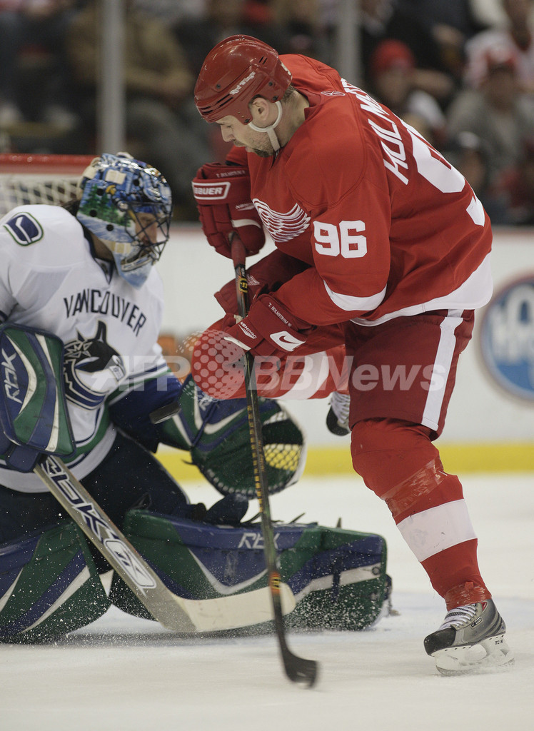 スポーツ ウインタースポーツ レッドウィングス シュートアウトの末にカナックスを破る 2008年1月18日 16:58 発信地:デトロイト/米国 [ 北米 米国 ] このニュースをシェア ‹ › ❮ 5/6 ❯ レッドウィングスのトーマス・ホルムソトラム(%%Tomas Holmstrom%%、右)のショットをセーブするカナックスのゴーリー、ロベルト・ルオンゴ(%%Roberto Luongo%%)。(c)AFP/Getty Images/Claus Andersen 画像作成中 ! 【1月18日 AFP】07-08NHL、デトロイト・レッドウィングス(Detroit Red Wings)vsバンクーバー・カナックス(Vancouver Canucks)。試合はシュートアウトの末にレッドウィングスが3-2でカナックスを降し、シーズン34勝目を挙げた。(c)AFP/Getty Images ウインタースポーツ 一覧へ> メディア・報道関係・法人の方向け 写真・動画 購入のお問合せ>