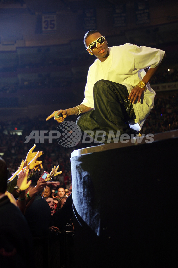 2008年1月17日、米ニューヨーク(New York)のマディソン・スクエア・ガーデン(Madison Square Garden)でパフォーマンスを行うラッパーのソウルジャ・ボーイ(%%Soulja Boy%%)。(c)AFP/Getty Images/Scott Gries
