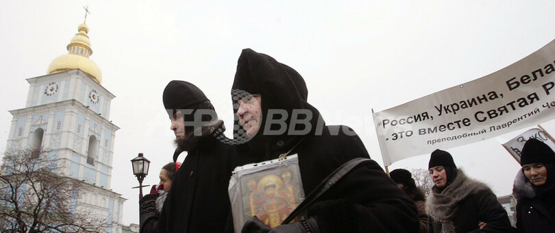 【1月20日 AFP】ウクライナのキエフ(Kiev)で17日、北大西洋条約機構(NATO)加盟を目指す親欧米派のビクトル・ユーシェンコ(Viktor Yushchenko)大統領に抗議するデモが、ウクライナ正教会の主導で行われた。