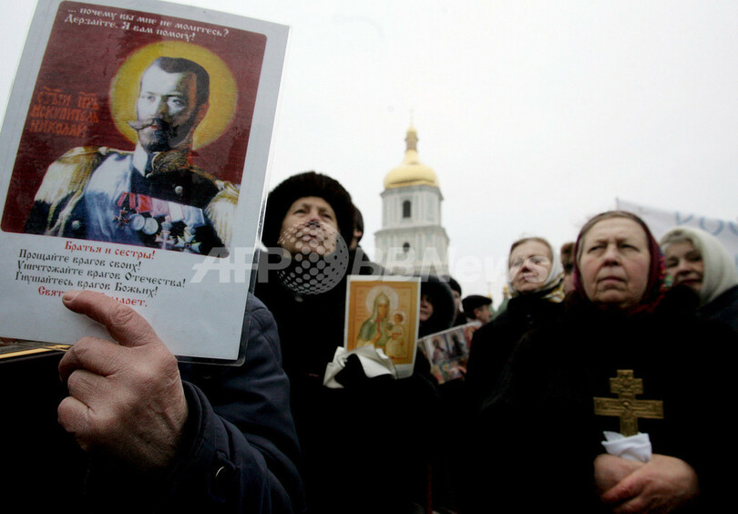 【1月20日 AFP】ウクライナのキエフ(Kiev)で17日、北大西洋条約機構(NATO)加盟を目指す親欧米派のビクトル・ユーシェンコ(Viktor Yushchenko)大統領に抗議するデモが、ウクライナ正教会の主導で行われた。