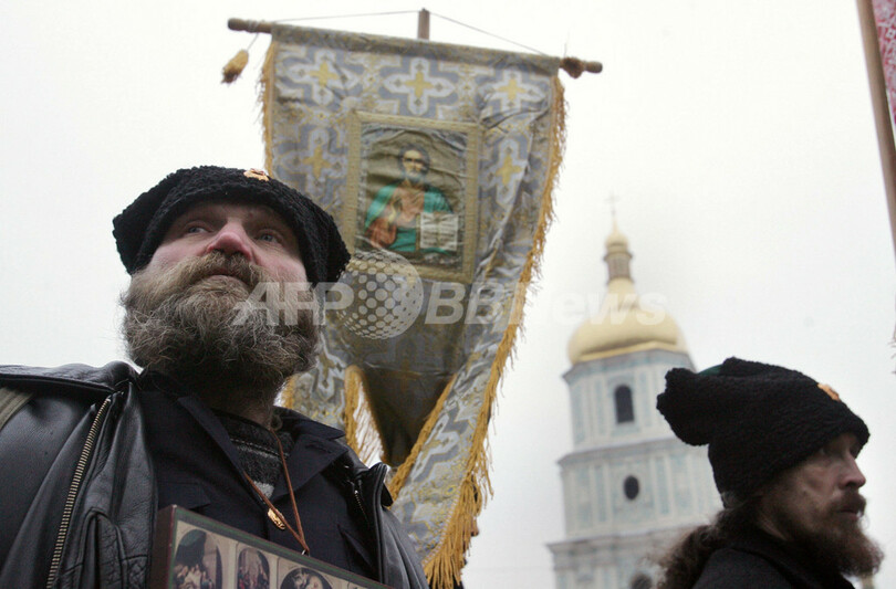 【1月20日 AFP】ウクライナのキエフ(Kiev)で17日、北大西洋条約機構(NATO)加盟を目指す親欧米派のビクトル・ユーシェンコ(Viktor Yushchenko)大統領に抗議するデモが、ウクライナ正教会の主導で行われた。