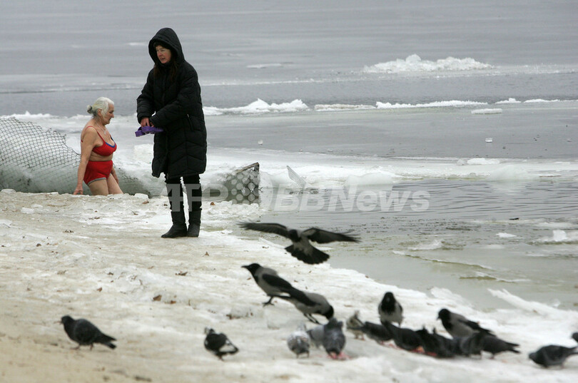 ニュース ライフ こぼれ話 「セイウチ」が健康維持に冷水浴、ウクライナ 2008年1月20日 9:55 発信地:キエフ/ウクライナ [ ロシア・CIS ウクライナ ] このニュースをシェア ‹ › ❮ 2/6 ❯ 2008年1月18日、ウクライナの首都キエフ(Kiev)で、健康維持のために冷水浴を行う女性ら。(c)AFP/SERGEI SUPINSKY 画像作成中 ! 【1月20日 AFP】ウクライナの首都キエフ(Kiev)では、身体の健康維持のために、川で伝統的な冷水浴を楽しむ人たちが増えている。冷水浴を行う人々は「セイウチ」と呼ばれているという。(c)AFP ライフ 一覧へ> メディア・報道関係・法人の方向け 写真・動画 購入のお問合せ>