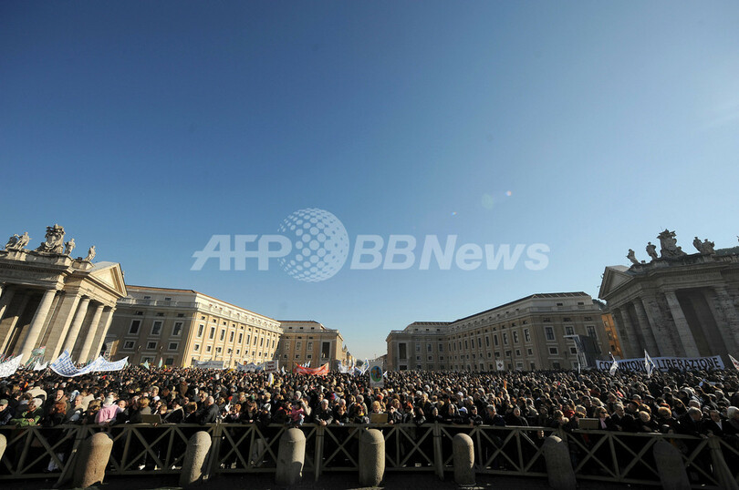 【1月21日 AFP】ローマ法王ベネディクト16世(Pope Benedict XVI)が学生らの反対でローマ大学サピエンツァ校(La Sapienza)での演説を中止したことを受け20日、バチカンのサンピエトロ広場(St Peter's Square)には、法王への支持を示めそうと、10万人以上の信者らが集まった。