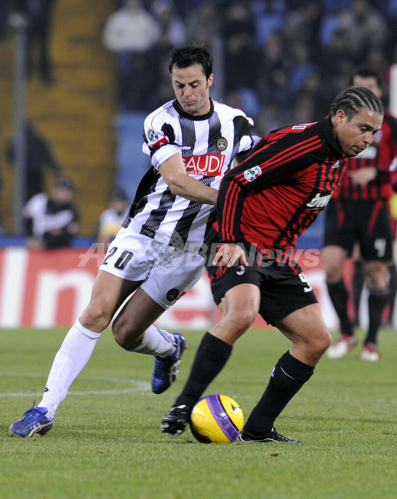 スポーツ サッカー ミラン ジラルディーノの決勝ゴールでウディネーゼに勝利 2008年1月21日 3:30 発信地:ウディネ/イタリア [ ヨーロッパ イタリア ] このニュースをシェア ‹ › ❮ 5/20 ❯ ウディネーゼのジャンドメニコ・メスト(%%Giandomenico Mesto%%、左)からマークされるミランのロナウド(%%Ronaldo%%)。(c)AFP/DAMIEN MEYER 画像作成中 ! 【1月21日 AFP】サッカー、07-08イタリア・セリエA・第19節、ウディネーゼ(Udinese)vsACミラン(AC Milan)。試合は後半ロスタイムにアルベルト・ジラルディーノ(Alberto Gilardino)が決勝点を挙げたミランが1-0で勝利を収めた。(c)AFP サッカー 一覧へ> メディア・報道関係・法人の方向け 写真・動画 購入のお問合せ>
