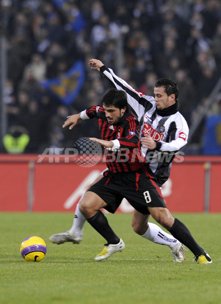 スポーツ サッカー ミラン ジラルディーノの決勝ゴールでウディネーゼに勝利 2008年1月21日 3:30 発信地:ウディネ/イタリア [ ヨーロッパ イタリア ] このニュースをシェア ‹ › ❮ 3/20 ❯ ウディネーゼのシモーネ・ペペ(%%Simone Pepe%%、右)と競り合うミランのジェンナロ・ガットゥーゾ(%%Gennaro Gattuso%%)。(c)AFP/DAMIEN MEYER 画像作成中 ! 【1月21日 AFP】サッカー、07-08イタリア・セリエA・第19節、ウディネーゼ(Udinese)vsACミラン(AC Milan)。試合は後半ロスタイムにアルベルト・ジラルディーノ(Alberto Gilardino)が決勝点を挙げたミランが1-0で勝利を収めた。(c)AFP サッカー 一覧へ> メディア・報道関係・法人の方向け 写真・動画 購入のお問合せ>