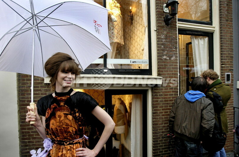 【1月21日 AFP】オランダの首都アムステルダム(Amsterdam)の有名な風俗街が19日、ファッションショー会場に様変わり、デザイナーたちが自慢の作品を、かつて売春宿だった建物で披露した。
