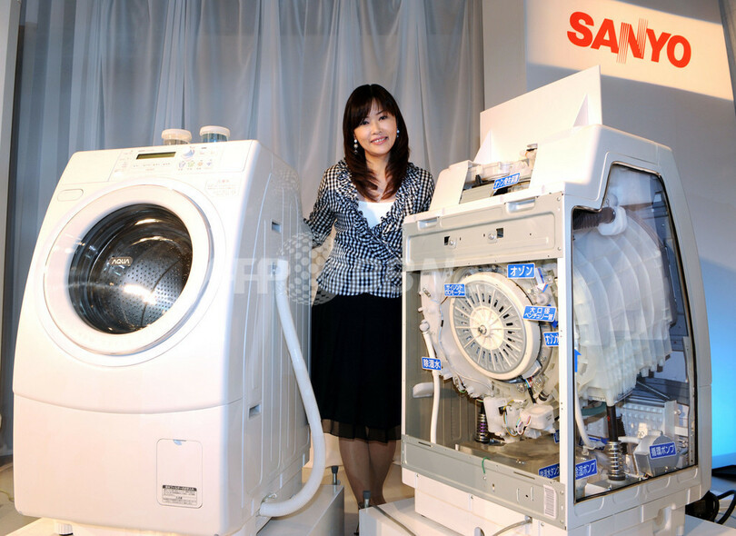【1月22日 AFP】三洋電機(Sanyo Electric)は21日、最新型のドラム式洗濯乾燥機「アクア(AQUA)」を発表した。「アクア」は世界で初めて空気(オゾン)の力で汚れを分解する「オゾンすすぎ」機能を搭載。同機能により、衣類の黄ばみの原因とされる「残留皮脂成分」が最大50%まで削減される。また、水を使わずに空気の力で除菌・消臭を行う「エアウォッシュ機能」により、革や絹など温度の変化に敏感な素材の汚れを落とすこともできる。2月下旬発売予定。(c)AFP