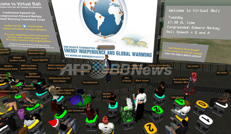 3D仮想空間「セカンドライフ(Second Life)」内の温暖化問題対策会議「Select Committee on Energy Independence and Global Warming」の様子。(c)AFP/OneWorld.net