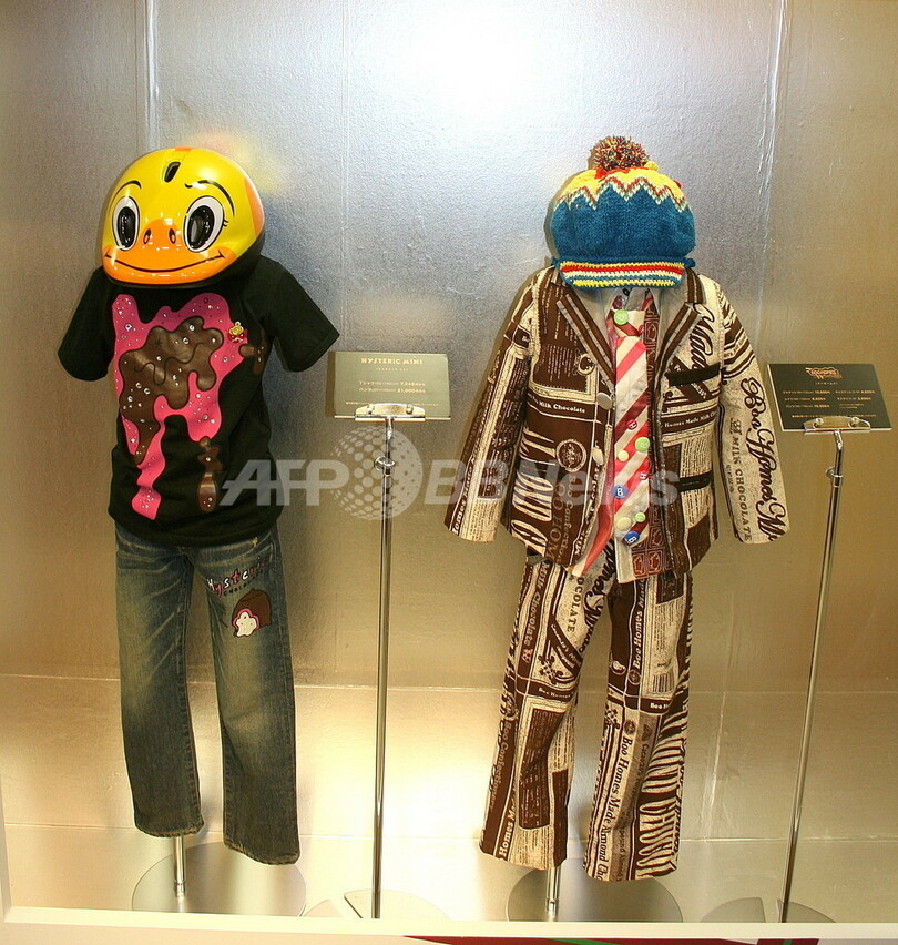 他にも、「ヒステリックミニ」「シャーリーテンプル」「メゾピアノ」「アニエスベー」など人気子供服ブランドのデザイナーがショコラをモチーフに子供服やアクセサリーを制作。マーブルチョコのようなボタンをあしらったショコラ色のカーディガンや、包み紙をイメージしたプリントが施されたジャケットとパンツのセットなど、どれも元気いっぱいで夢あふれるデザインだ。