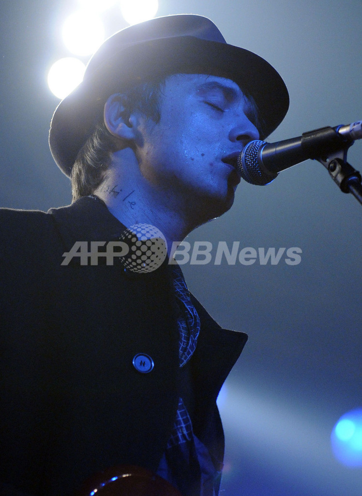 2008年1月22日、 ドイツ西部ケルン(Cologne)にあるライブ・ミュージック・ホール(Live Music Hall)でパフォーマンスを行う、英ロックグループ、ベイビーシャンブルズ(Babyshambles)のフロントマン、ピート・ドハーティ(%%Pete Doherty%%)。(c)AFP/DDP/HENNING KAISER