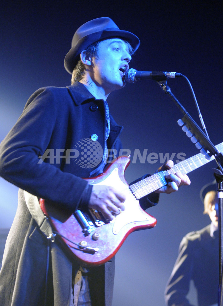 2008年1月22日、 ドイツ西部ケルン(Cologne)にあるライブ・ミュージック・ホール(Live Music Hall)でパフォーマンスを行う、英ロックグループ、ベイビーシャンブルズ(Babyshambles)のフロントマン、ピート・ドハーティ(%%Pete Doherty%%)。(c)AFP/DDP/HENNING KAISER