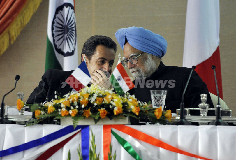 【1月26日 AFP】フランスのニコラ・サルコジ(Nicolas Sarkozy)大統領は25日、インドを公式訪問し、ニューデリー(New Delhi)で同国のマンモハン・シン(Manmohan Singh)首相と会談した。両首脳は、民生用原子力協力協定の締結で一致、また武器取引を越えた両国間の軍事連携強化に合意したと明らかにした。