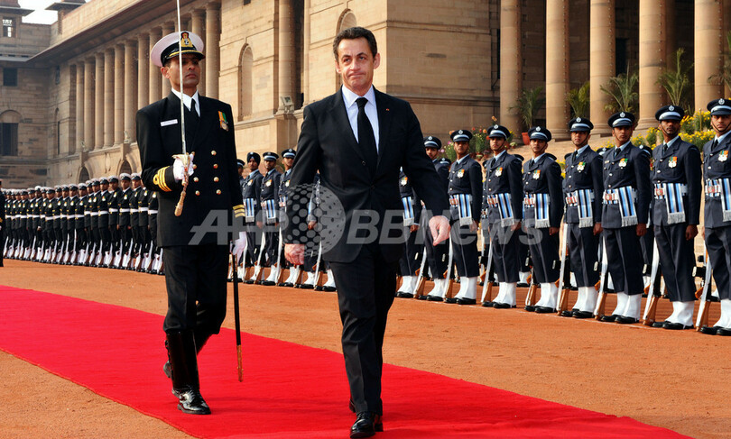【1月26日 AFP】フランスのニコラ・サルコジ(Nicolas Sarkozy)大統領は25日、インドを公式訪問し、ニューデリー(New Delhi)で同国のマンモハン・シン(Manmohan Singh)首相と会談した。両首脳は、民生用原子力協力協定の締結で一致、また武器取引を越えた両国間の軍事連携強化に合意したと明らかにした。