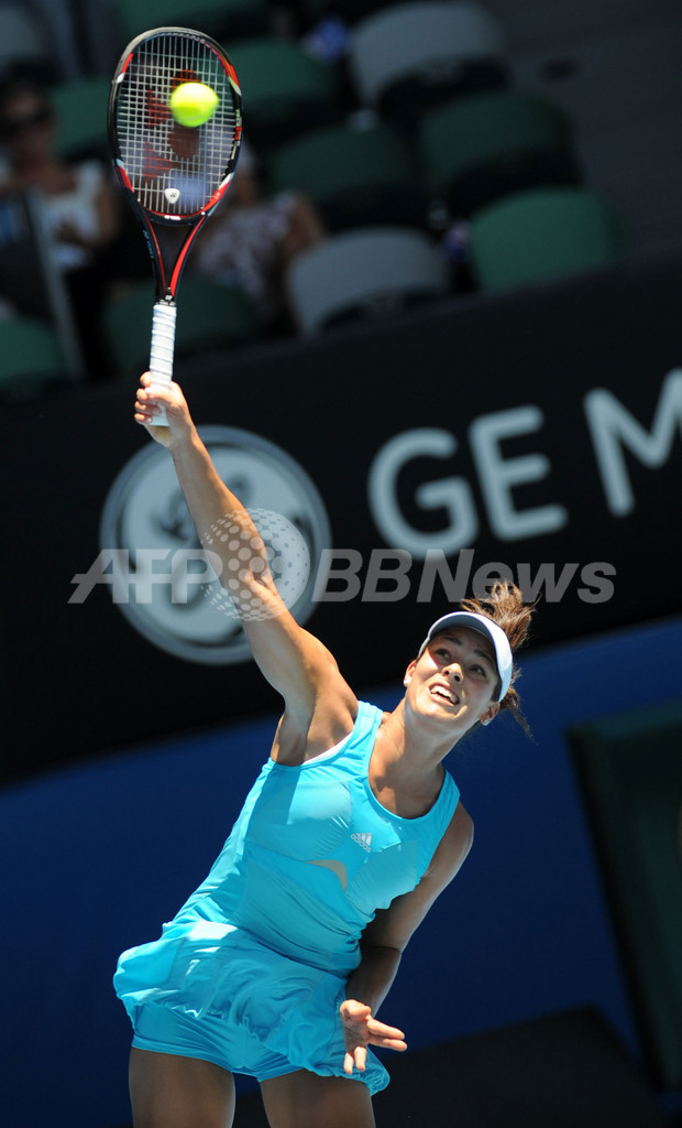【1月26日 AFP】(写真追加、記事更新)テニス、全豪オープン(Australian Open Tennis Tournament 2008)・女子シングルス決勝。大会第5シードのマリア・シャラポワ(Maria Sharapova、ロシア)は大会第4シードのアナ・イワノビッチ(Ana Ivanovic、セルビア)と対戦。シャラポワはセットカウント2-0(7-5、6-3)で勝利を収め、大会初優勝を果たしグランドスラム3勝目を飾った。