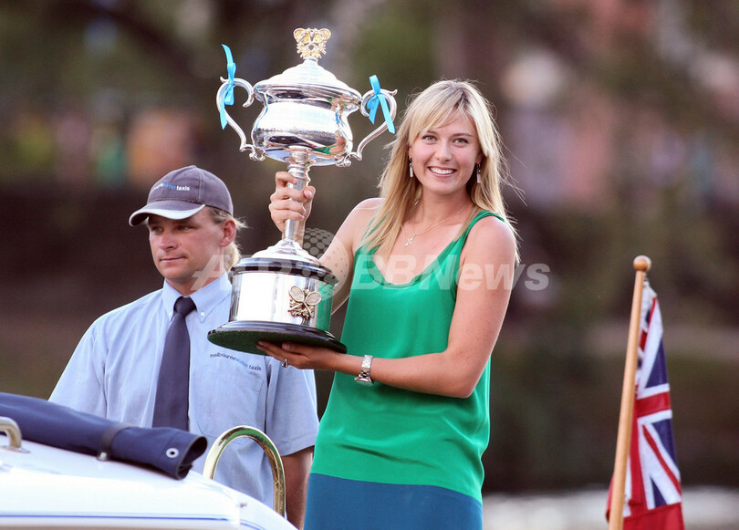 【1月26日 AFP】テニス、全豪オープン(Australian Open tennis tournament 2008)・女子シングルス決勝で大会第4シードのアナ・イワノビッチ(Ana Ivanovic、セルビア)をセットカウント2-0(7-5、6-3)のストレートで降し、全豪初制覇を果たした大会第5シードのマリア・シャラポワ(Maria Sharapova、ロシア)は、試合後にメルボルン市内を流れるヤラ川(Yarra river)で記念写真撮影に臨んだ。(c)AFP