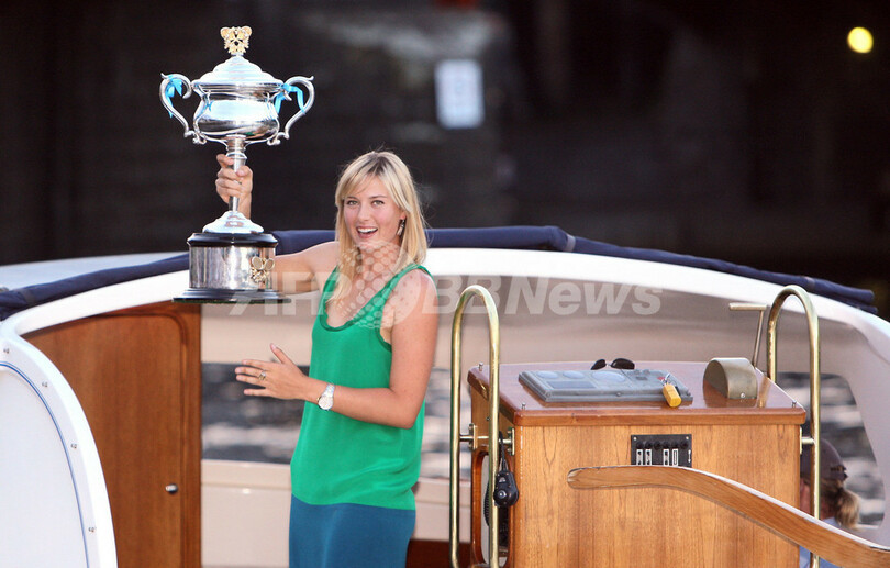 【1月26日 AFP】テニス、全豪オープン(Australian Open tennis tournament 2008)・女子シングルス決勝で大会第4シードのアナ・イワノビッチ(Ana Ivanovic、セルビア)をセットカウント2-0(7-5、6-3)のストレートで降し、全豪初制覇を果たした大会第5シードのマリア・シャラポワ(Maria Sharapova、ロシア)は、試合後にメルボルン市内を流れるヤラ川(Yarra river)で記念写真撮影に臨んだ。(c)AFP