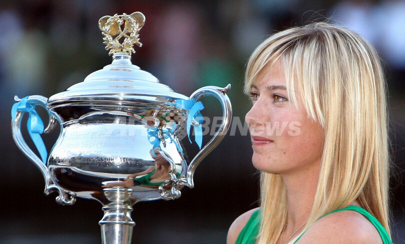 【1月26日 AFP】テニス、全豪オープン(Australian Open tennis tournament 2008)・女子シングルス決勝で大会第4シードのアナ・イワノビッチ(Ana Ivanovic、セルビア)をセットカウント2-0(7-5、6-3)のストレートで降し、全豪初制覇を果たした大会第5シードのマリア・シャラポワ(Maria Sharapova、ロシア)は、試合後にメルボルン市内を流れるヤラ川(Yarra river)で記念写真撮影に臨んだ。(c)AFP