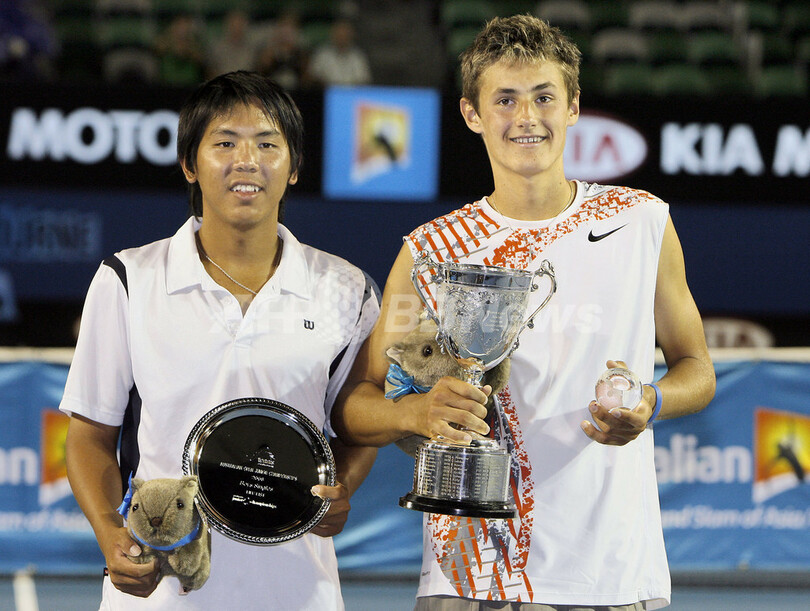 スポーツ テニス バーナード・トミック 全豪男子ジュニア制す 2008年1月26日 20:30 発信地:メルボルン/オーストラリア [ アジア・オセアニア オーストラリア ] このニュースをシェア ‹ › ❮ 2/5 ❯ 表彰式に臨むヤン(左)とトミック。(c)AFP/RICHARD A. BROOKS 画像作成中 ! 【1月26日 AFP】テニス、全豪オープン(Australian Open Tennis Tournament 2008)・男子ジュニア決勝。大会第5シードのバーナード・トミック(Bernard Tomic、オーストラリア)は、大会第10シードのヤン・ツンファ(Tsung-Hua Yang、台湾)と対戦。トミックはセットカウント2-1(4-6、7-6、6-0)でツンファを降し、優勝を飾った。(c)AFP テニス 一覧へ> メディア・報道関係・法人の方向け 写真・動画 購入のお問合せ>
