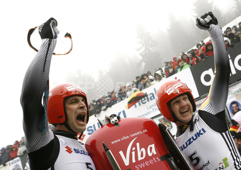 【1月27日 AFP】リュージュ世界選手権2008(World Luge Championships 2008)・オーバーホフ大会、二人乗り。アンドレ・フロルシュッツ(Andre Florschuetz)/トルステン・ブストリッヒ(Torsten Wustlich、ドイツ)組は、2本合計1分26秒893を記録して優勝を果たした。