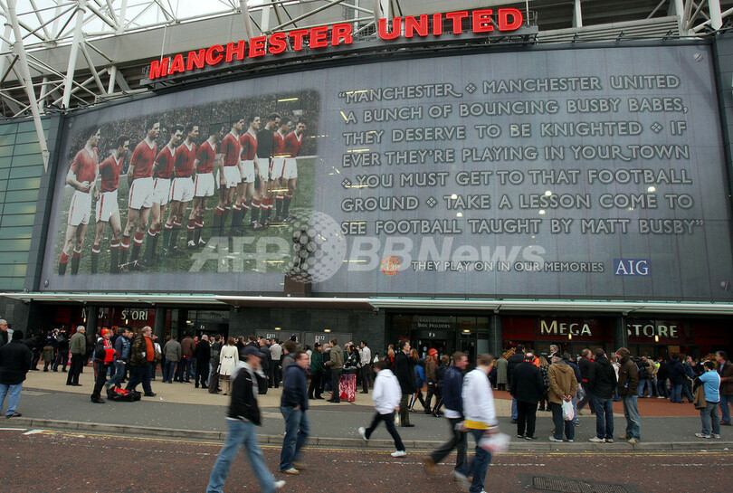 【1月27日 AFP】サッカー、イングランド・FAカップ2007-08(FA Cup 2007-08)・4回戦、マンチェスター・ユナイテッド(Manchester United)vsトッテナム・ホットスパー(Tottenham Hotspur)戦を前に、1958年当時のマンチェスター・ユナイテッドの選手たちを追悼するポスターが、マンチェスター・ユナイテッドの本拠地オールド・トラフォード(Old Trafford)に掲げられた。