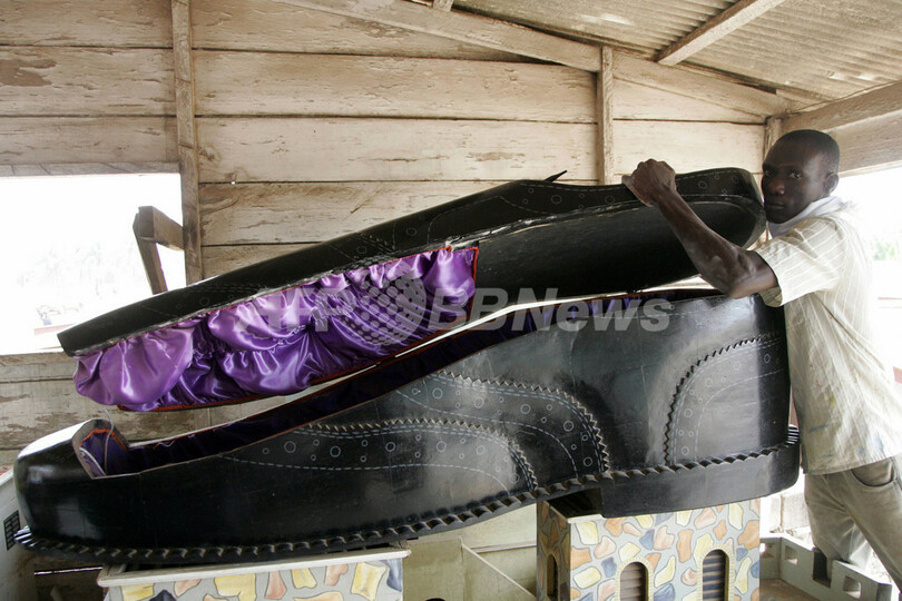 ニュース ライフ こぼれ話 あなたは靴型、クジラ型?ガーナで個性的な特注棺おけが人気 2008年1月28日 10:03 発信地:アクラ/ガーナ [ アフリカ ガーナ ] このニュースをシェア ‹ › ❮ 1/6 ❯ 2008年1月27日、ガーナの首都アクラ(Accra)のショールームで靴型の棺おけのふたを開ける葬儀屋の男性。(c)AFP/ABDELHAK SENNA 画像作成中 ! 【1月28日 AFP】ガーナではその人の地位や職業を反映した特注の棺おけが人気だ。ユニークな棺おけの中には、靴や航空機、炭酸飲料のボトルなどを模したものもある。(c)AFP ライフ 一覧へ> メディア・報道関係・法人の方向け 写真・動画 購入のお問合せ>