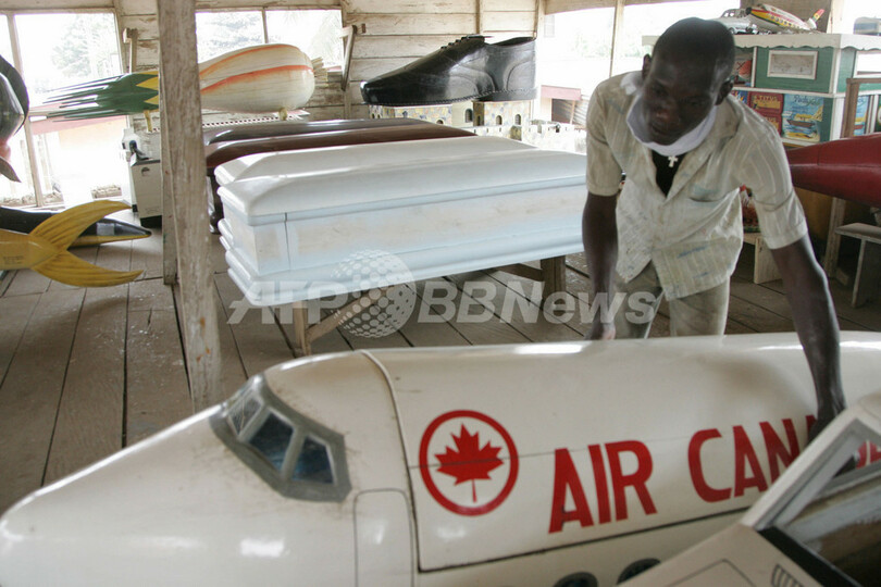 ニュース ライフ こぼれ話 あなたは靴型、クジラ型?ガーナで個性的な特注棺おけが人気 2008年1月28日 10:03 発信地:アクラ/ガーナ [ アフリカ ガーナ ] このニュースをシェア ‹ › ❮ 6/6 ❯ 2008年1月27日、ガーナの首都アクラ(Accra)のショールームで航空機型の棺おけを扱う葬儀屋の男性。(c)AFP/ABDELHAK SENNA 画像作成中 ! 【1月28日 AFP】ガーナではその人の地位や職業を反映した特注の棺おけが人気だ。ユニークな棺おけの中には、靴や航空機、炭酸飲料のボトルなどを模したものもある。(c)AFP ライフ 一覧へ> メディア・報道関係・法人の方向け 写真・動画 購入のお問合せ>