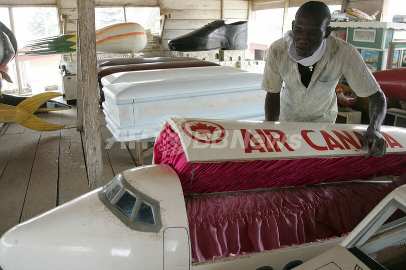 ニュース ライフ こぼれ話 あなたは靴型、クジラ型?ガーナで個性的な特注棺おけが人気 2008年1月28日 10:03 発信地:アクラ/ガーナ [ アフリカ ガーナ ] このニュースをシェア ‹ › ❮ 5/6 ❯ 2008年1月27日、ガーナの首都アクラ(Accra)のショールームで航空機型の棺おけのふたを開ける葬儀屋の男性。(c)AFP/ABDELHAK SENNA 画像作成中 ! 【1月28日 AFP】ガーナではその人の地位や職業を反映した特注の棺おけが人気だ。ユニークな棺おけの中には、靴や航空機、炭酸飲料のボトルなどを模したものもある。(c)AFP ライフ 一覧へ> メディア・報道関係・法人の方向け 写真・動画 購入のお問合せ>