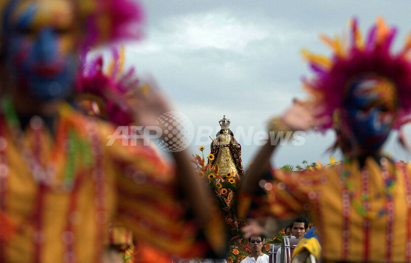 ニュース ライフ フィリピン各地でサント・ニーニョ祭 2008年1月30日 17:59 発信地:マニラ/フィリピン [ アジア・オセアニア フィリピン ] このニュースをシェア ‹ › ❮ 3/4 ❯ 2008年1月27日、フィリピンの首都マニラ(Manila)で幼年期のイエス・キリスト(Jesus Christ)、サントニーニョ(Santo Nino)像を掲げてサントニーニョ祭のパレードに参加する山車。(c)AFP/JES AZNAR 画像作成中 ! 【1月30日 AFP】フィリピン各地で27日、キリスト教カトリックのサントニーニョ(Santo Nino)祭が行われ、首都マニラ(Manila)でもカトリック教徒らが幼年期のキリスト像サントニーニョを掲げながら市内をパレードした。(c)AFP ライフ 一覧へ> メディア・報道関係・法人の方向け 写真・動画 購入のお問合せ>