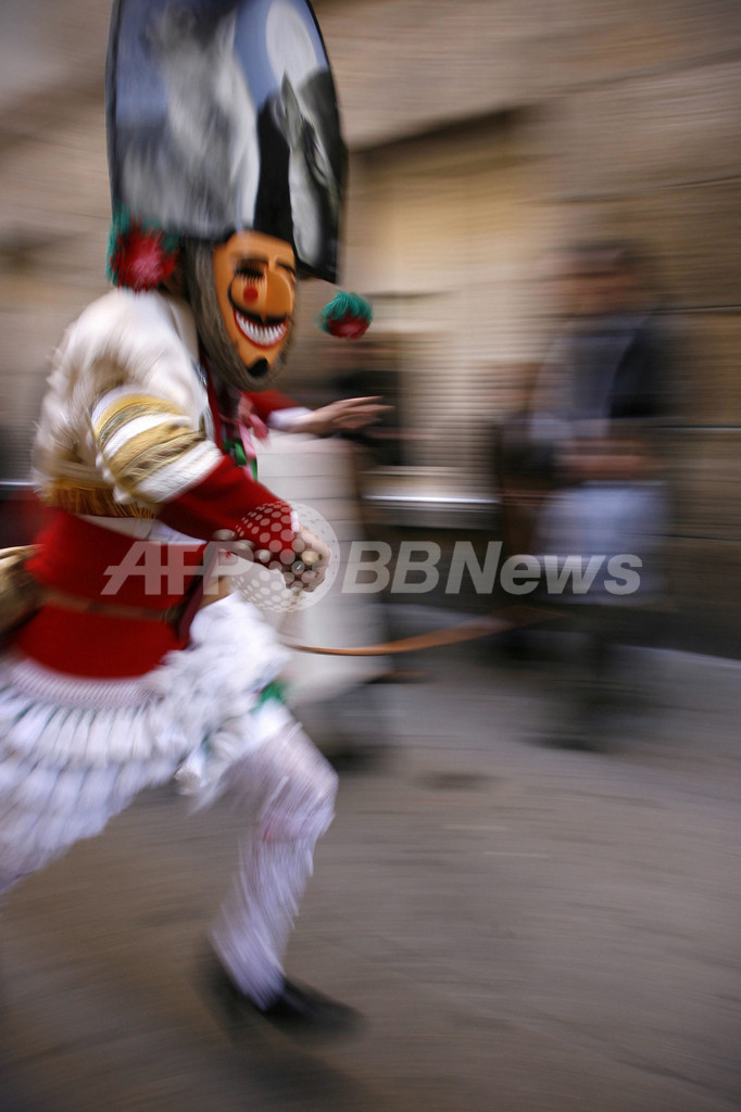 ニュース ライフ こぼれ話 スペインで中世伝統の仮面カーニバル 2008年1月29日 8:38 発信地:べリン/スペイン [ ヨーロッパ スペイン ] このニュースをシェア ‹ › ❮ 1/13 ❯ 2008年1月27日、スペイン北西部の村べリン(Verin)で開かれた伝統行事のカーニバルに参加し、仮面を付けて通りを走り抜ける住民。(c)AFP/Miguel RIOPA 画像作成中 ! 【1月29日 AFP】スペイン北西部ガリシア(Galicia)地方の村ベリン(Verin)で27日、中世から続く伝統のカーニバル「Entroido」が開催された。このカーニバルは、独特な仮面が使われることが特徴。期間中はこの仮面を付けた参加者らが、むちを振り回し、腰に結んだウシの首に付ける鈴を鳴らしながら村の通りを走り回る。(c)AFP ライフ 一覧へ> メディア・報道関係・法人の方向け 写真・動画 購入のお問合せ>