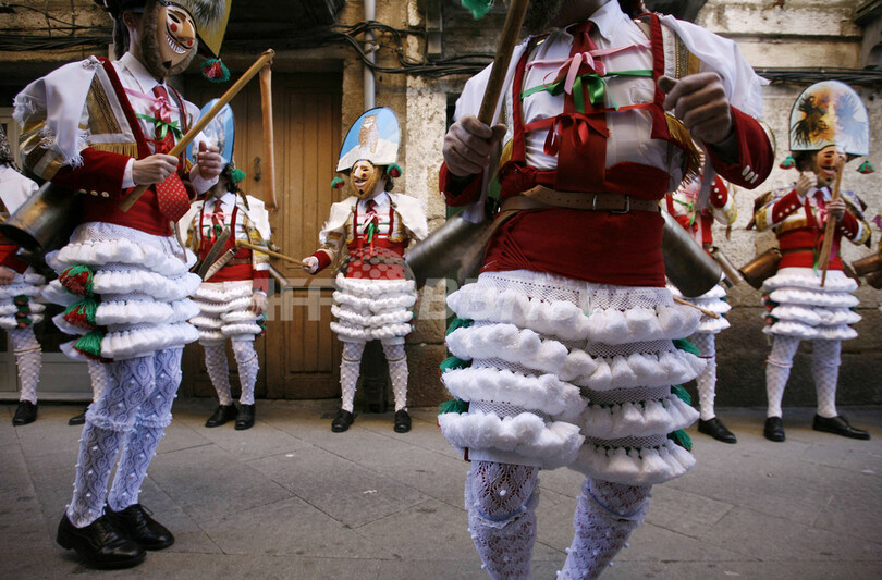 ニュース ライフ こぼれ話 スペインで中世伝統の仮面カーニバル 2008年1月29日 8:38 発信地:べリン/スペイン [ ヨーロッパ スペイン ] このニュースをシェア ‹ › ❮ 12/13 ❯ 2008年1月27日、スペイン北西部の村べリン(Verin)で、仮面を付けて伝統行事のカーニバルに参加する住民。(c)AFP/Miguel RIOPA 画像作成中 ! 【1月29日 AFP】スペイン北西部ガリシア(Galicia)地方の村ベリン(Verin)で27日、中世から続く伝統のカーニバル「Entroido」が開催された。このカーニバルは、独特な仮面が使われることが特徴。期間中はこの仮面を付けた参加者らが、むちを振り回し、腰に結んだウシの首に付ける鈴を鳴らしながら村の通りを走り回る。(c)AFP ライフ 一覧へ> メディア・報道関係・法人の方向け 写真・動画 購入のお問合せ>